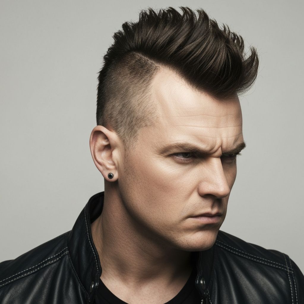 Dramatic center strip with shaved or very short sides. Ultimate statement style.